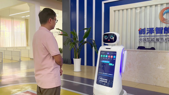 創(chuàng)澤智能消毒機器人和智能大屏機器人等多款機器人亮相蘭洽會,彰顯了創(chuàng)澤AI技術(shù)實力與場景深耕能力