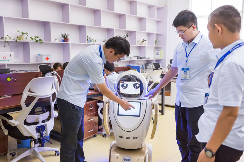 創澤的智能機器人在前臺工作,可語音對話喚醒
